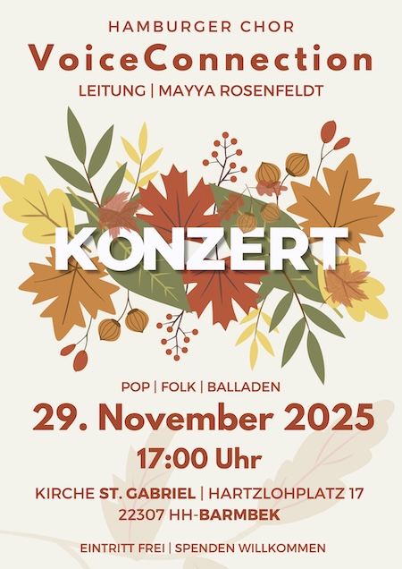 Freuen Sie sich in St. Gabriel auf ein mitreißendes Konzert des Chores VoiceConnection aus Hamburg-Heimfeld!